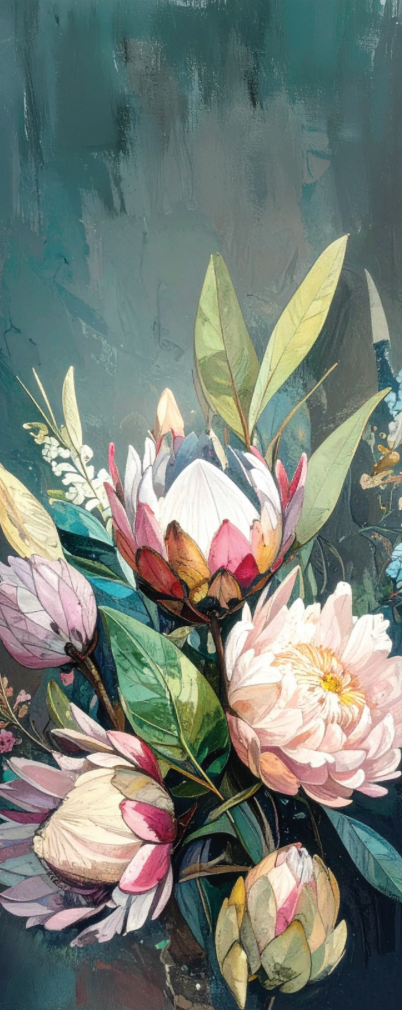 Depth and elegance meet creative expression with Tjhoko Paint’s Midnight Blooms Deluxe Non-Tear Decoupage Sheet. Featuring striking proteas and lush foliage against a moody teal background, this extra-large 813 × 2032 mm design brings dramatic sophistication to furniture and doors.