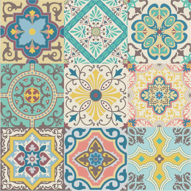- Large vinyl sheet with 9 pastel tile-inspired patterns